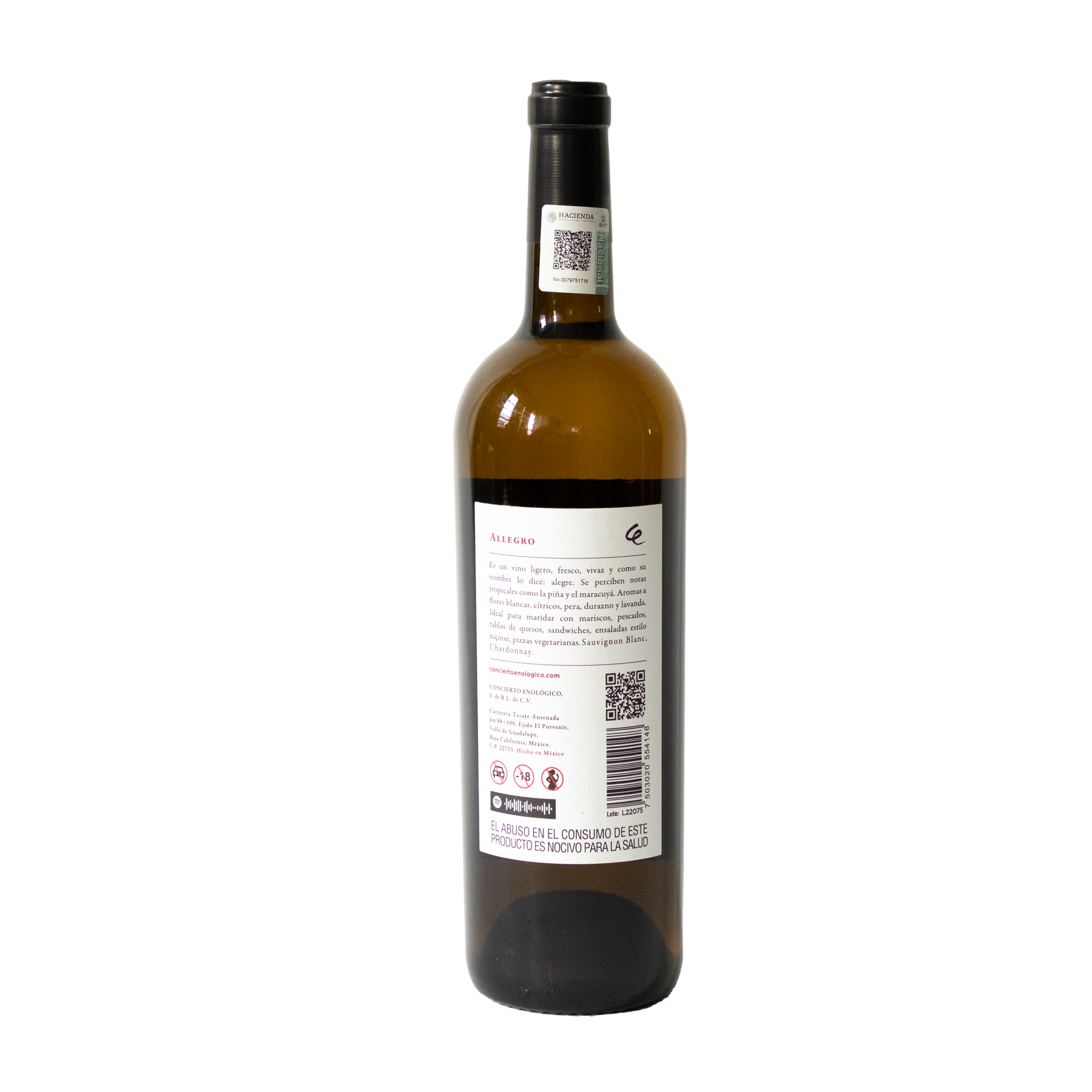 Notas de Cata: Vino ligero, fresco, vivaz y como su nombre lo dice: alegre. Mezcla de las dos uvas blancas más emblemáticas del mundo del vino, lo mejor de ambas. Notas tropicales como maracuyá y piña, aromas a flores blancas, cítricos y pera.