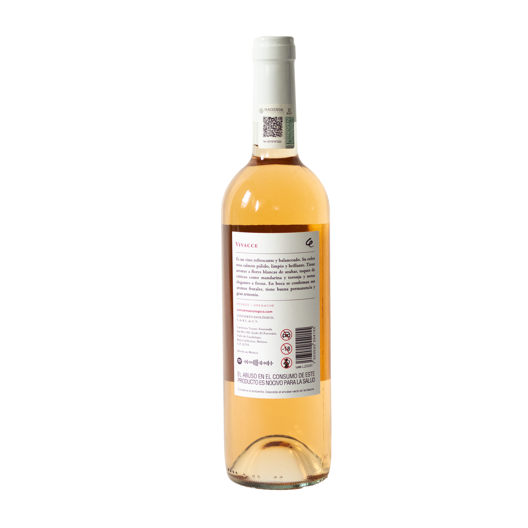Notas de Cata: Vino rosado con aromas a fresas frescas, toronja y sutiles notas a flores blancas como azahar y jasmín. Un vino muy agradable y fresco con ataque frutales y una correcta acidez.